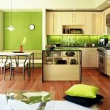 When choosing a kitchen color scheme, it is important to adhere to the design principle - the more saturated the color you use, the more subdued tones it needs to be complemented. Otherwise, the kitchen will tire and cause discomfort. If you use a color scheme in light green, then the rest of the atmosphere should be as neutral as possible.