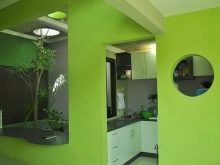 Walls can be painted completely, but only one of them can be distinguished - It all depends on your preferences and the principle of zoning in the interior. Green walls harmoniously complement wooden headsets from solid wood, while the darker the furniture, the more light the walls should be.