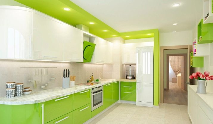 But you can use lime for the ceiling, however, in this case it should be muffled and always glossy. It is advisable to combine it with white, brown or yellow - then the overall perception will be more balanced. By the way, a pistachio ceiling is considered one of the leading trends in recent years.