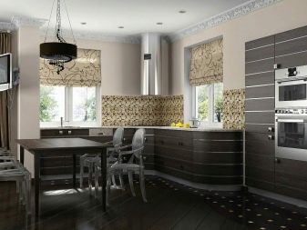 If you decide to give preference to a kitchen set in the color of wenge, then it will go well with light wallpaper, white ceiling. The curtain can also be made the color of wenge. You can tie it with a light satin ribbon.If you carry out repairs in the style of minimalism or high-tech, then instead of curtains, it is better to use Venge blinds.