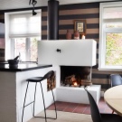 Everyone knows that a fireplace is one of the elements of luxury and rich decor. Today it is installed in the kitchen-living rooms, so that the atmosphere takes on additional coziness and comfort. Different styling of the common room space requires the placement of a real or artificial budget fireplace. For example, real flames are inherent in the classic interior, while hi-tech style involves a fire-imitating design. A cozy Provence style requires the installation of an analog fireplace. Modern designs have a special design and size, they can be used for its intended purpose or placed as a decorative element.
