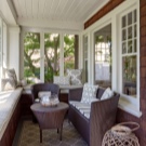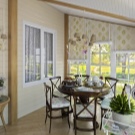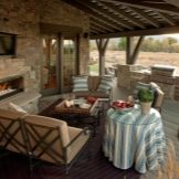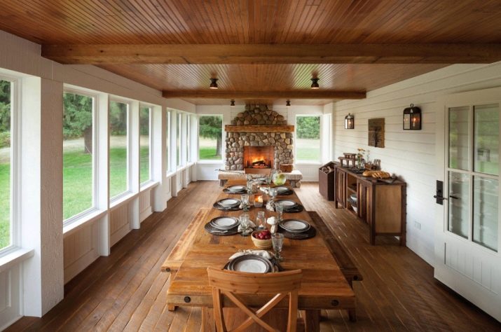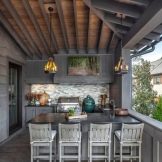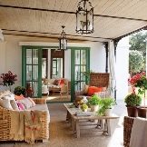 The interior of the open veranda is decorated with skillfully selected furniture. Wicker furniture, a thick fabric umbrella and living plants will look best here. When designing a closed terrace, you should use a style similar to the kitchen room, so you can combine two different rooms.A plus of the closed design is the possibility of year-round use.