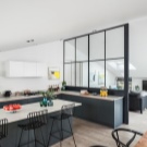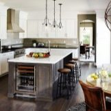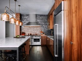 In addition, a contrasting finish, but at the same time corresponding to the chosen style of the kitchen design, can become a separator of the working and dining areas.