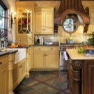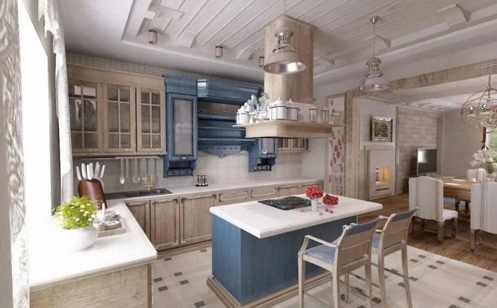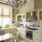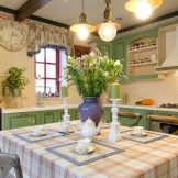 It is in this stylization that the tenderness, sensuality and airiness of the finished interior can be traced. In Provence, it is preferable to use light shades of yellow, green or blue. Potted plants should be used as decorative elements, and a vase with a bouquet of wildflowers should be placed on the table. To emphasize the style of the kitchen, you need to pay special attention to the elements of textiles, the material of which should have floral prints.