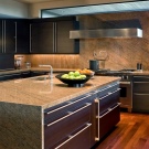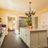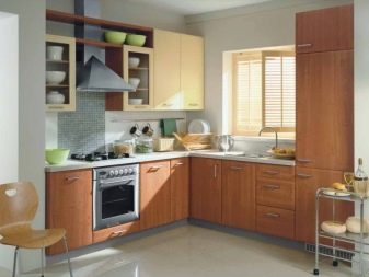 - Floor coverings, as well as countertops and aprons made in dark colors, are impractical, they can be seen settled splashes of fat and drops of water.