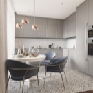 - Minimalism It seems the easiest beautiful style. In such kitchens there is no decor, there is only the most necessary. Spotlights, a chandelier is located above the dining area. Deep cabinets allow you to hide kitchen utensils and appliances.