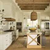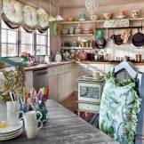 It is preferable to hang pictures on the walls. Small rugs can be laid on the floor. This may not seem practical, but it perfectly emphasizes the specifics of the style. On the open shelves of the kitchen set, elegant jars should be installed in which you can store spices for cooking, various herbs. And at the very top wicker baskets of large sizes will look succinctly, which can serve as an additional storage place for various little things.
