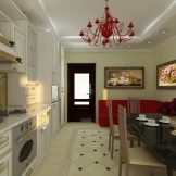 The narrow form of the kitchen requires the use of a special interior style, due to which the overall space of the room is visually increased. The ideal option would be minimalism and loft styles, in which the use of small details is excluded.