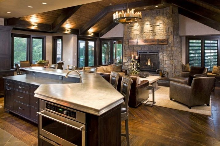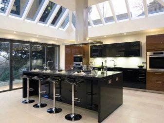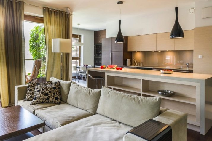 Small kitchens in private homes are extremely rare, but if they do, the owners combine them with the living room to increase the usable space. It turns out a large room, which must be divided into an open niche or a bar.