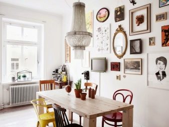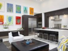 The picture should become an integral part of the interior, and therefore consistent with the overall style. For example, in a kitchen decorated in the style of minimalism or loft, not even drawings will look good, but posters with graphics or motivating inscriptions.