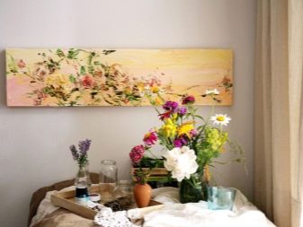 In addition, the shape of the space and the need for adjustment should be taken into account. For example, a narrow picture placed vertically will visually increase the level of height, and the same narrow picture, but which is part of the modular work, helps to visually expand the space.