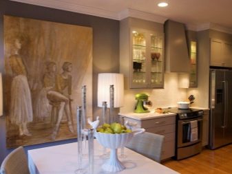 Pictures are rarely used to design a kitchen space, but in vain. A well-chosen element can create the necessary zest of a room or complete the existing look of the interior.