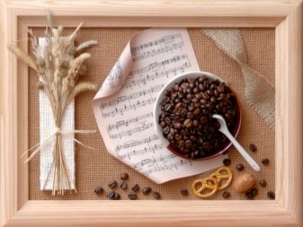 Do not forget about the ability to place voluminous work on the wall, if this does not contradict the style used. Alternatively, it can be work from salt dough or coffee beans. They are distinguished by satisfactory durability, but it is rather difficult to care for them.