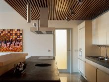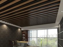 In addition to stretch coatings, it will be possible to create a black ceiling with a glossy texture using aluminum battens. Such a smooth surface with a mirror effect is ideal for the kitchen. Another solution will be grilyato. This is a suspended ceiling in the form of a lattice. It looks great in any room.