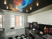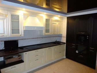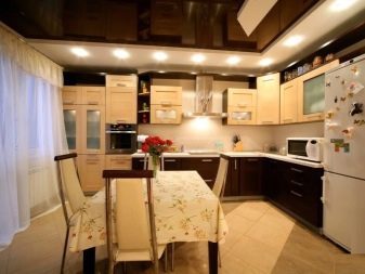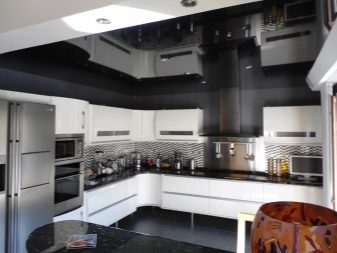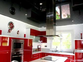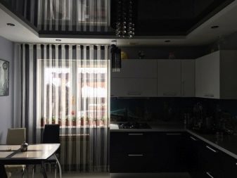 The color of the stretch ceiling in the kitchen is a separate topic for conversation. Many designers believe that it must certainly be light and glossy, while others are inclined to believe that it is necessary to choose a coating in dark colors with a matte texture. Today, the black ceiling is very popular. Such a design technique will help to add elegance and charm to the kitchen interior.