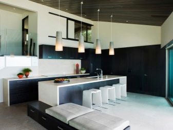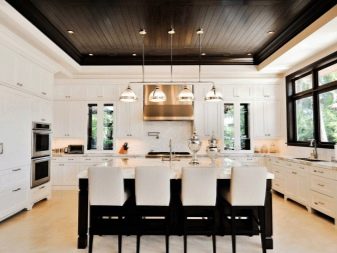The classic black ceiling in the kitchen has a number of significant advantages: