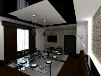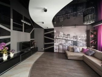- The presence of a glossy or matte black ceiling does not imply a huge number of decorative elements. A similar design will look too bulky and clumsy.