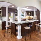 Many people want to bring classics into the interior, but the design of the bar does not fit into this style. In this case, you can choose eclecticism - carved furniture, marble and stucco work perfectly with modern forms, metal and plastic. To emphasize eclecticism, the interior should be based on both the classic shade of white and the modern saturated color - purple, green, gray, terracotta or even black. Together they will look very interesting and unusual.