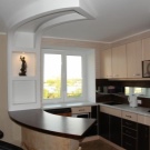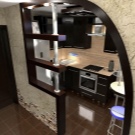 Finally, physical partitions also serve for zoning. Sometimes it is a bar, but not always - not for all types of planning it can be successfully placed across the room. For some decisions, you have to put a stand along the wall. Then an additional delimitation can be an arch, beams or columns. They are good if you can make them functional - for example, you can hold lighting from the beams, and dishes can be stored inside the arch or column. However, often physical distinctions interfere in a small kitchen - they take up additional space and make moving around the room not too convenient.