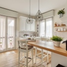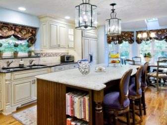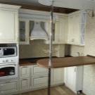 A wooden bar can fit in with Provence. This is a delicate and delicate style based on light colors that recreates the atmosphere of the French province.Light shades will contribute to the maximum expansion of the space in the room and fill the kitchen with light. Wooden painted furniture, floral ornament in textiles, simple accessories made of glass, metal and ceramics - all this will give your kitchen a unique charm.