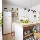 - To make the kitchen look more, have warmer shades at the entrance, and colder ones in the back of the room.