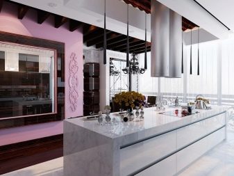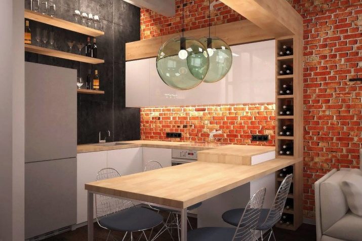 The loft-style kitchen with a breakfast bar can also look very good.stylish and organic. This style can combine plastic, metal and wood, unusual textures and colors, but the basis of the design will be shades of white. Sometimes it looks good imitation of brick or masonry on the walls, natural wood in the design of furniture. Headset and stand should be simple in their design. Additionally, you can delimit the space using beams and different floor tiles.