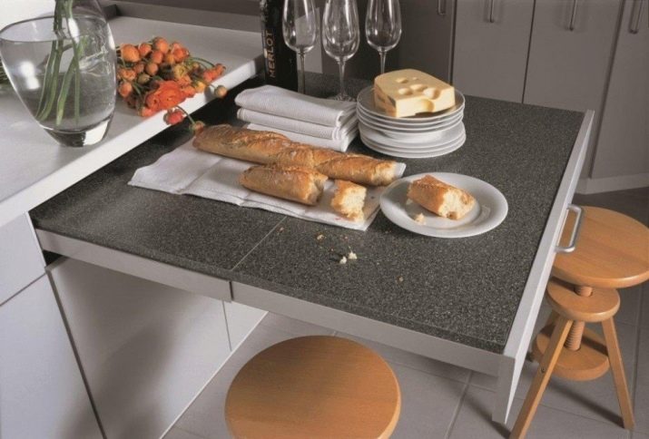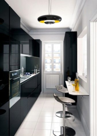 - You can choose all kinds of transformers with pull-out countertopswhich you will use as needed. A transforming tabletop is a very practical solution for a small narrow kitchen.