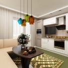 The color of the sofa should match the overall color scheme. However, depending on the idea, the sofa can be neutral or become a bright accent in the kitchen. It can be decorated with bright pillows.
