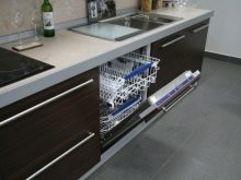 - If you want to buy a dishwasher, then it is better to put it next to shelves and cupboards for dishes.