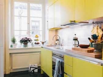 - Green or yellow make the kitchen no less attractive. These shades are best combined with white or beige.