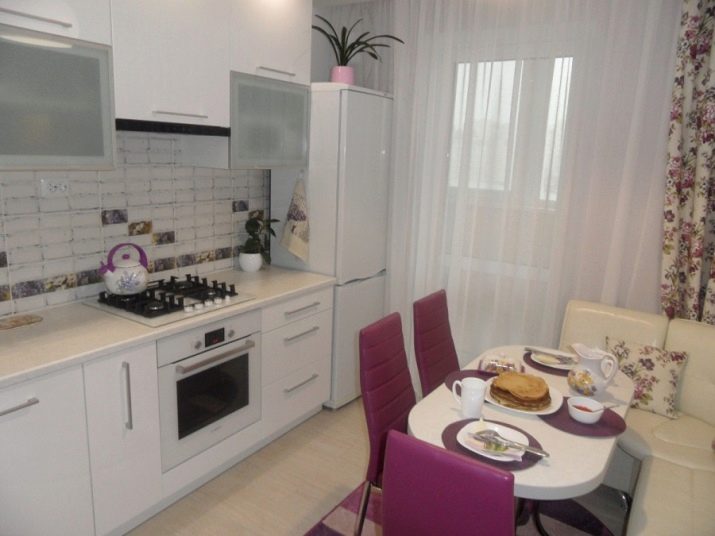 Violet color will become a bright and original complement to the white interior, and yellow chairs will beautifully complement it.
