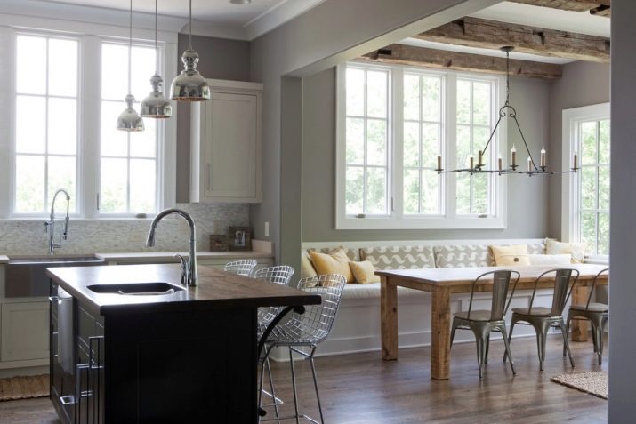 Wherein combining sometimes does not detract from the purpose and convenience of the room, which has to be combined with the kitchen, for example, in the case of combining in one space the kitchen and the living room (hall). Windows in such cases are often located on the same wall. The layout will most likely be linear.