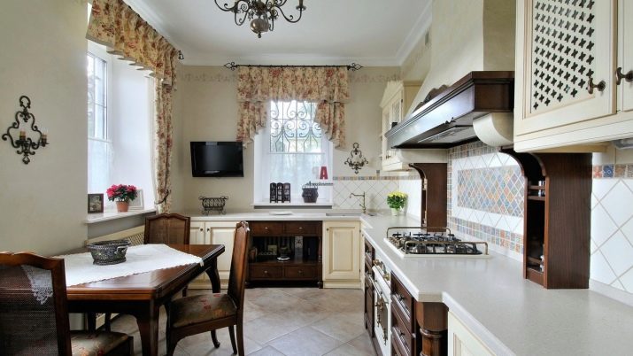 - an example of a good choice of style and color scheme for a kitchen in the country