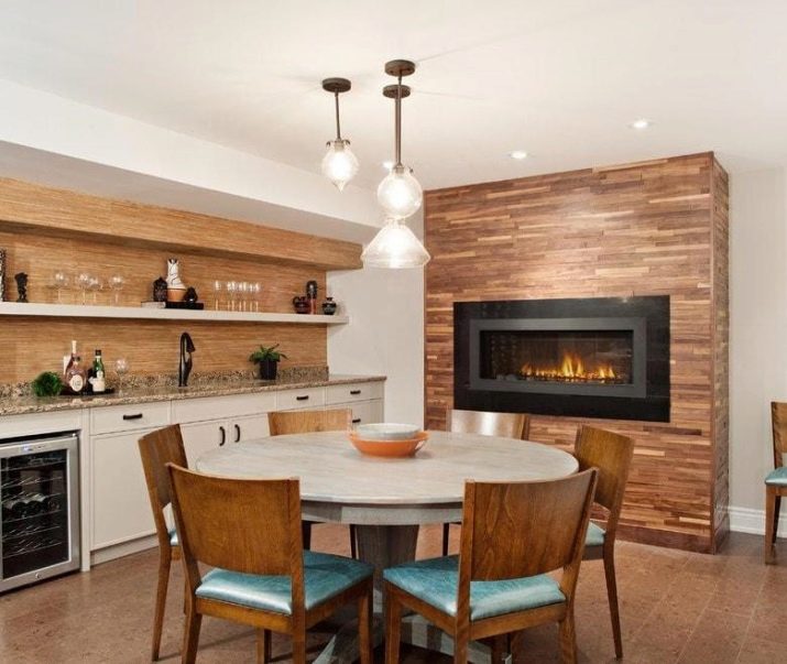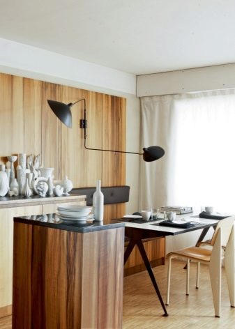 There will be a tinting effect, which is often used in the manufacture of wooden furniture. Light cladding will retain its color without changing the effect on the overall decorative picture. The result is two expressive and contrasting zones in one room.