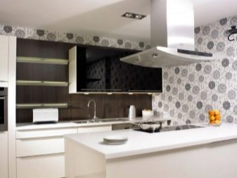 The bright kitchen unit looks very elegant and stylish. Consider how to choose the right wallpaper for a white kitchen to emphasize the dignity of furniture.