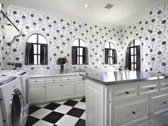 The surfaces of the walls and the furniture itself should be well washed and moisture resistant, otherwise the snow-white interior will quickly become soiled and unsightly. Choose wallpapers that can be washed without the risk of ruining them: