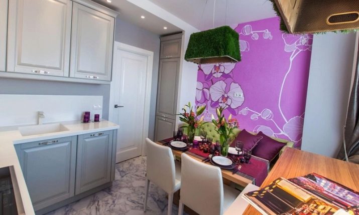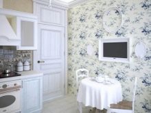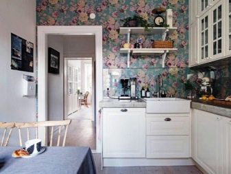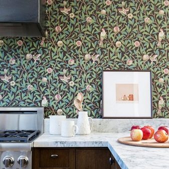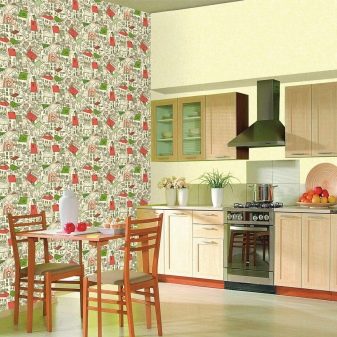 - if the furniture in the kitchen is made in soothing colors without frills, it is better to choose a wallpaper with a picture;