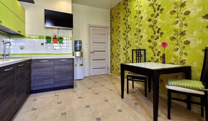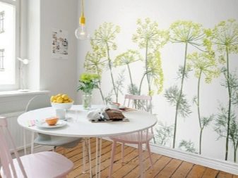 Vinyl wallpapers can be a great option for the kitchen. Such coatings are more durable than paper ones, which begin to deform under high humidity, which is not uncommon in the kitchen. The same problems can arise with more expensive products, for example, bamboo or silk paintings. Although they will look very beautiful and impressive in the interior of the room, it is better not to choose them for kitchen rooms. Such products are suitable for large spacious rooms.