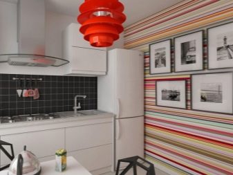 Stripes can often be seen in stores, but many doubt whether they are suitable for a small room. The fact is that the horizontal strip will make the room visually wider. Given that the ceilings in the small "Khrushchev" are already quite low, this option should be abandoned. Wallpaper with a vertical strip will have the opposite effect. When choosing them, the kitchen will seem narrower than it really is. If the choice fell on the striped wallpaper, it is worth decorating them with one accent wall.