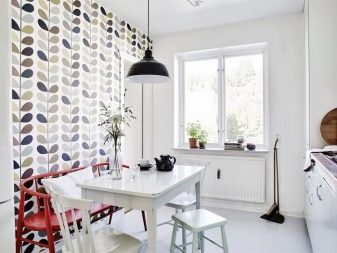 For a small kitchen, it is better to choose cloths with increased resistance to fading. Given that there is a gas stove, it is worth choosing a product with fireproofing, especially if it is decided to stick the wallpaper at a small distance from the stove.