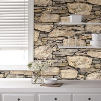 Textured or compact vinyl wallpaper will also be a good option for rooms with high humidity. They are easy to wash, they will not be scratched. Usually these are coatings that imitate brick or masonry, plaster.