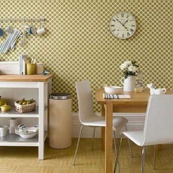 When choosing kitchen wallpapers, you should consider their features. Since spots may appear on the surface in this room during cooking, wallpapers are chosen taking into account the fact that they will have to be washed or cleaned often.