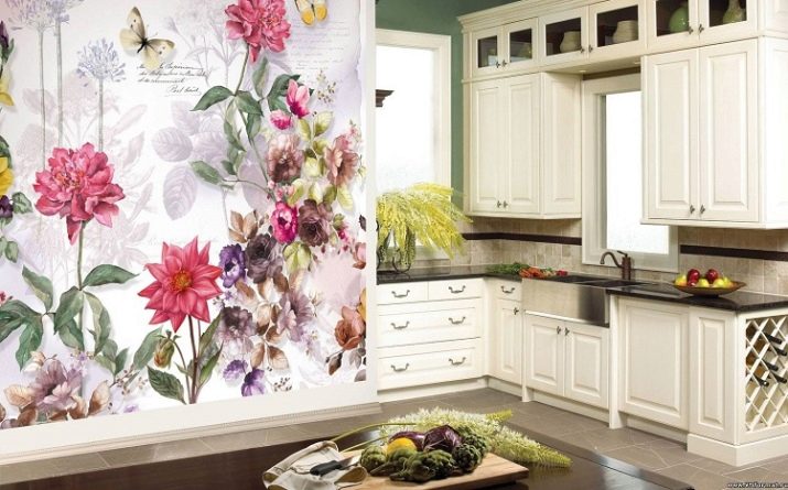 The choice of such photo wallpaper can be a good option for a small kitchenette, made in the style of Provence.