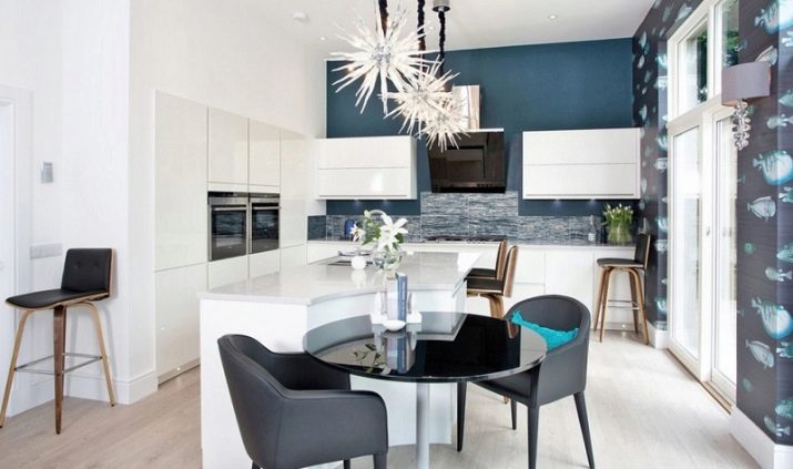 Blue wallpapers give the room a special marine touch. This option is more suitable for the Italian style. It is better not to choose blue shades for kitchens in regions with a cold climate, because they will create even greater coolness.