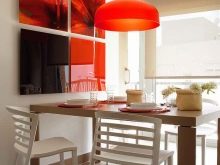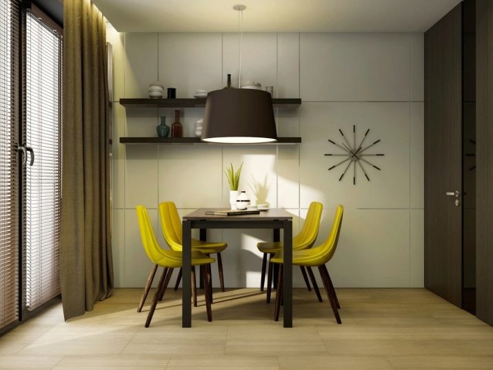 - Security. The decorative wall above the dining table should not be overloaded with furniture and various objects. Heavy hanging shelves with pots can fall on your head at any time. First of all, it is worth thinking about the safety of households. This rule should be observed especially sharply if the family has children or shy pets.