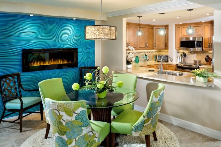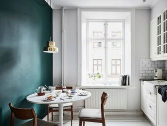 When choosing a color for decorating the wall near the kitchen table, you should be guided by the main palette of the kitchen. Similar or contrasting options are used.