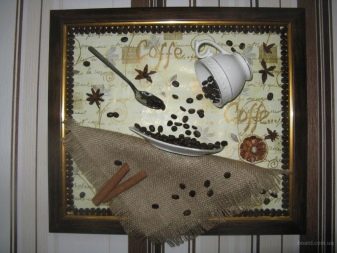 - Decorative panel. Decor can be made independently, which is very convenient and not expensive. A medium-sized panel can be decorated with pasta, coffee beans, and dry plants.