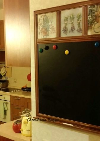- Slate board. It carries not only decorative, but also functional meaning. Allows you to leave cute notes for household members. You can not only write, but also draw.