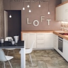 - Immerse yourself in the atmosphere of industrialization and track lights, which are perfectly combined with ceiling beams.