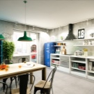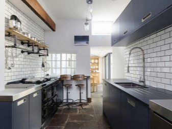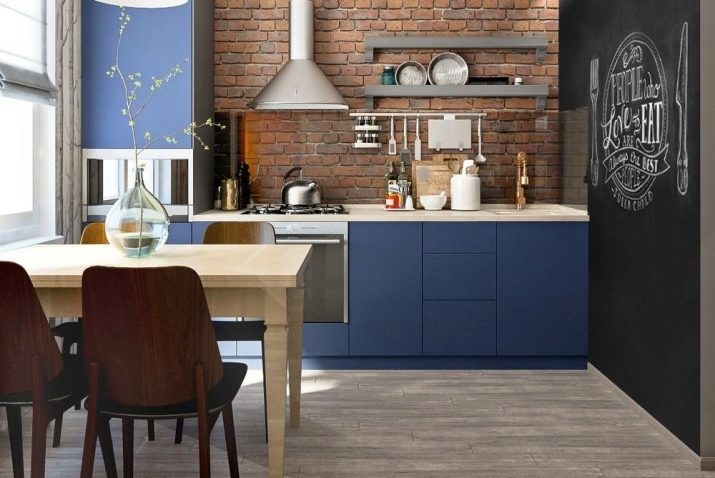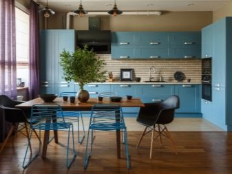 - To choose blue furniture for the room is a rather bold decision to direct the loft. But such furniture looks very advantageous in small bright kitchens.